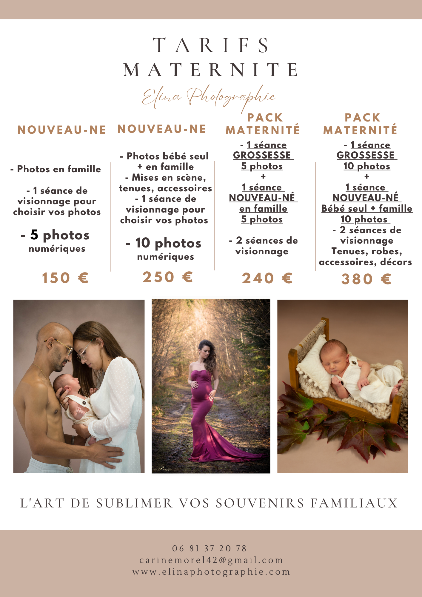 Parce que les premiers jours passent très vite, il est conseillé de réserver votre séance avant la naissance afin de garantir une place.